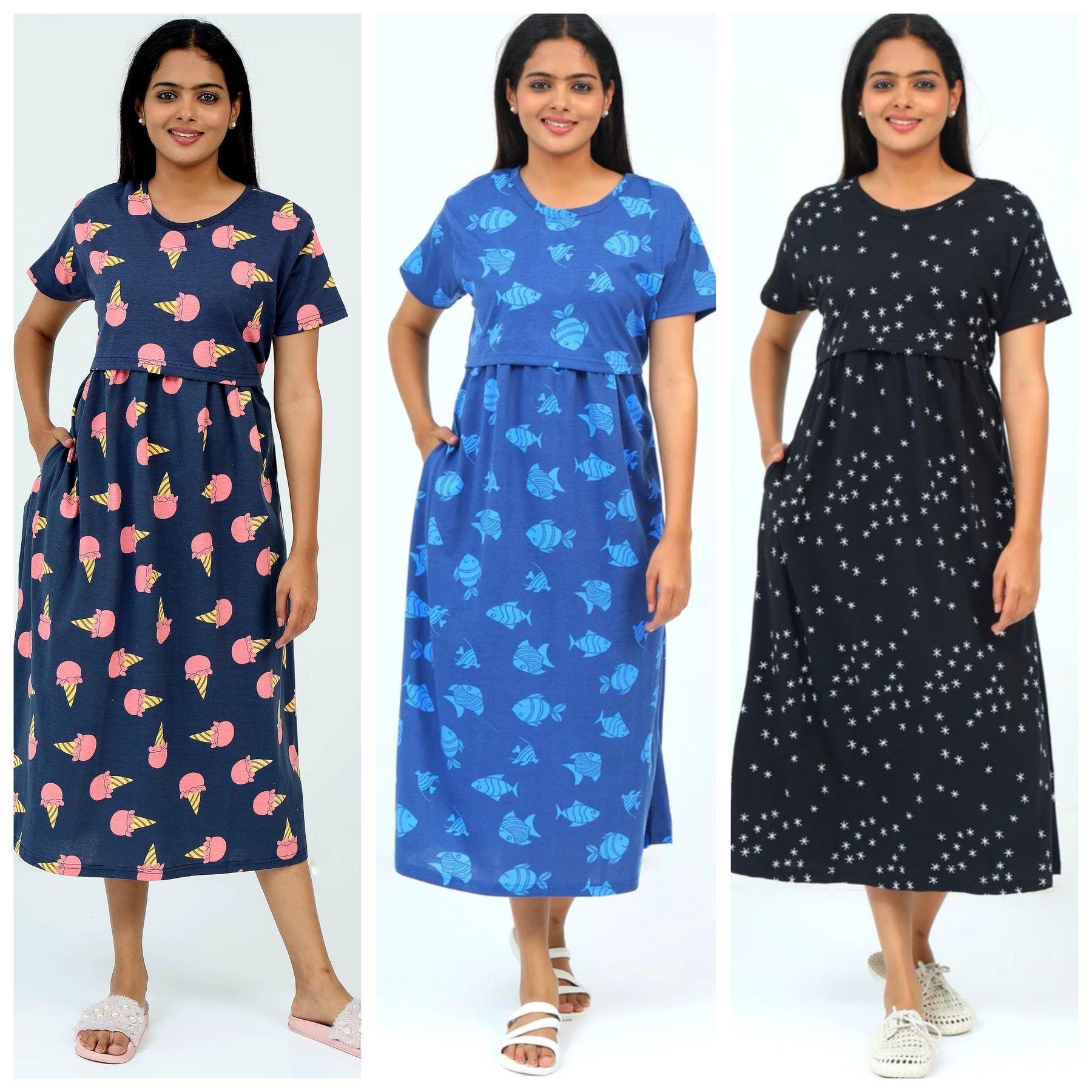 Women's Pure Cotton Maternity Gown/Maternity wear/Feeding 3 pieces