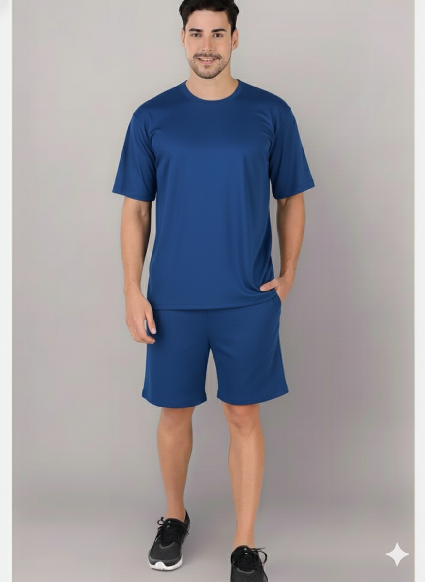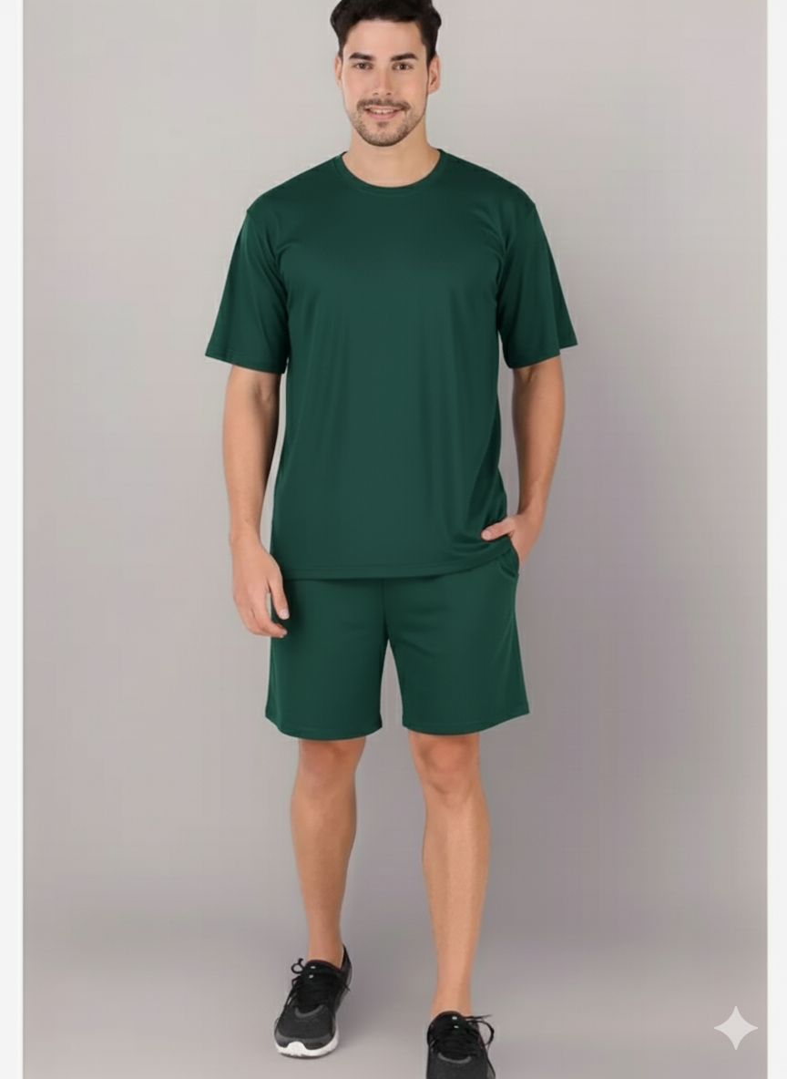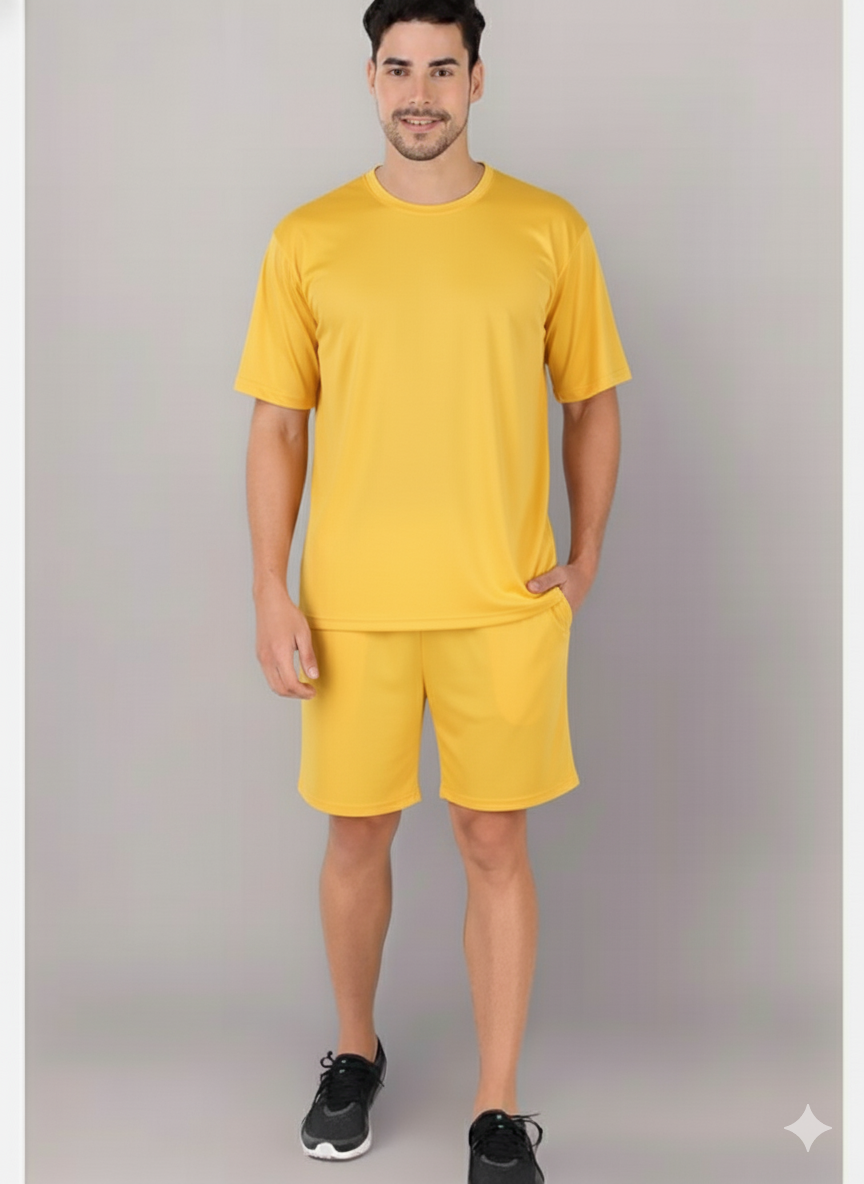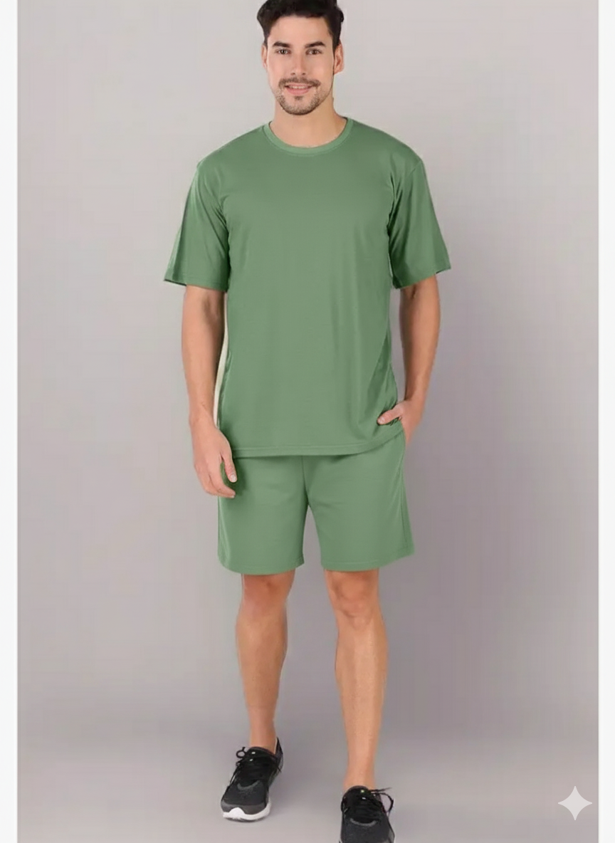 T-Shirt and Shorts Set: Consists of a Half-sleeve Oversized T-shirt and above-the-knee length pajama shorts, can be used as gym co-ord for men or running co-ord men