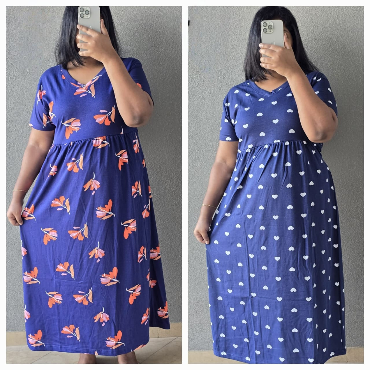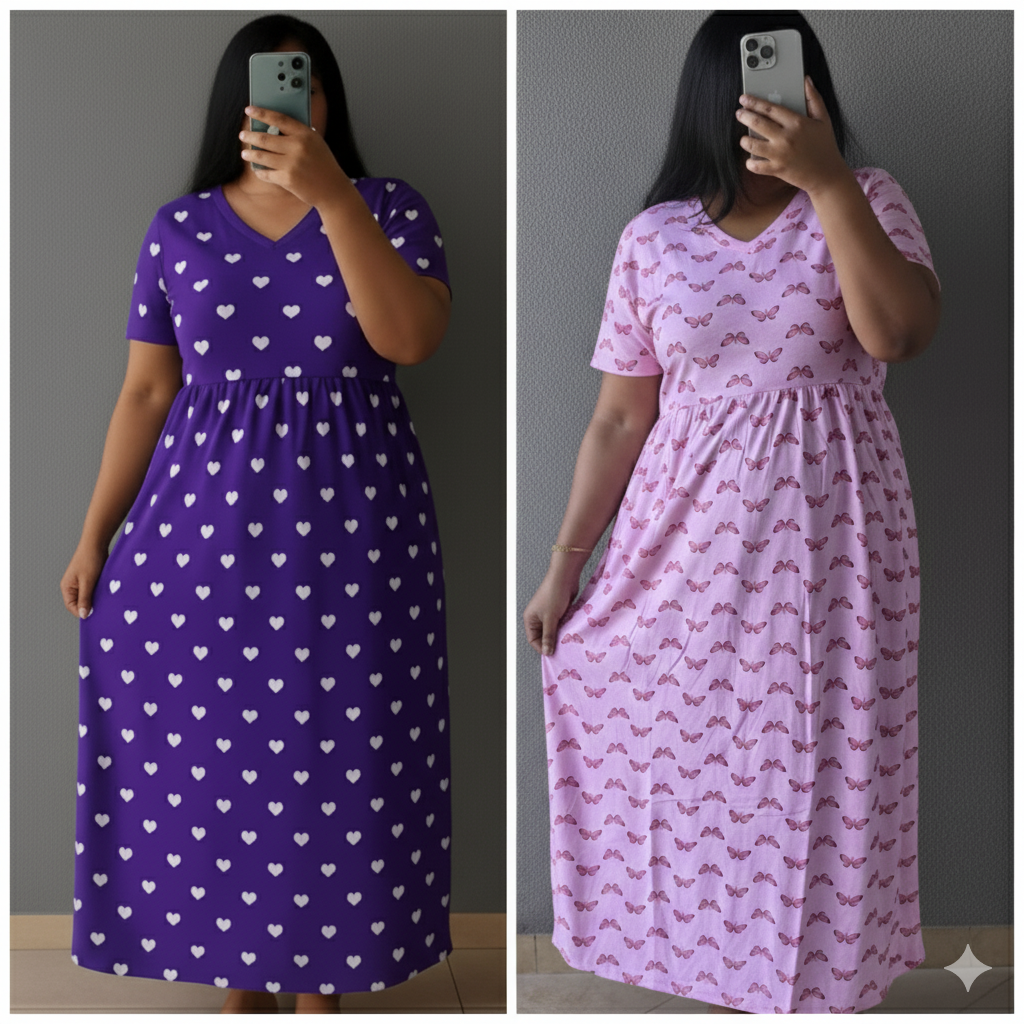 Discover comfort and style with this versatile maternity dress designed for everyday wear. The full-length maxi dress features a relaxed empire waist silhouette that gracefully accommodates your changing body throughout pregnancy. Made with soft, breathable fabric, this dress comes in two charming prints - a delicate black butterfly pattern on pale yellow and a playful floral design with pink butterflies and black flowers on light grey. The short-sleeve design, round neckline, and ankle-length cut offer both comfort and elegance. Perfect for casual outings or lounging at home, this non-feeding maternity dress provides ample room for movement while maintaining a flattering shape. The gathered waistline creates a feminine silhouette while ensuring maximum comfort. Pair it with comfortable footwear for a complete look. The dress is easy to maintain and designed to last throughout your pregnancy journey. Available in multiple sizes to ensure a perfect fit for every stage of pregnancy.